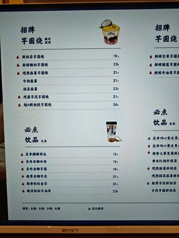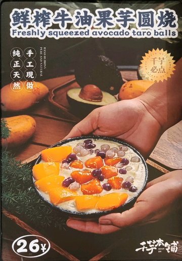 芒果芋圓燒 / 鮮奶茶芋圓燒 / 招牌老椰芋圓 / 鮮榨椰奶芋圓燒 / 招牌老椰芋泥 / 牛油果卡士芋圓燒