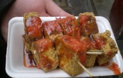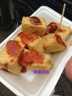走在路上老远就闻到到了臭豆腐的味道,说实话,确实挺臭的 不过,还是去买了一份尝尝,现在是5块钱一份8个的量,诈点辣椒,甜酱,蘸蘸再吃,挺好吃的,豆腐口感不错,外皮炸不的焦,挺脆的,一口咬下去,臭味就更浓了,蘸着辣椒酱吃,又辣又过瘾,挺带劲的!查看更多