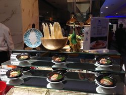 环境很不错,店很大。很多坏的海鲜,回来后两个人都拉肚子了,但是仍然没有给差评。因为现在做生意也不容易啊。这么大一个店开出来,却没有几个人在吃。难怪食材也不新鲜了,但是也是店家需要注意的地方,宁可限量进货,也不要剩下坏的海鲜,把客人的身体搞坏了。其实这家店聘请的厨师水平还可以的,比如说做港式点心的厨师,凤爪和蒸蒜香骨很好吃,吃了整整两大盘还不过瘾。糕点区也可圈可点,布朗尼很赞的,喜欢吃,还有菊花蛋糕。烤羊肉很好吃,吃了很多。西瓜汁也榨得很好喝,我一直在喝。送的大闸蟹和鲍鱼,不太喜欢吃,可能最近吃多了吧……三文鱼切得不好,居然能吃出骨头的!生蚝扇贝全是臭掉的昂,要注意了!虾也好多死的!领哈根达斯的那个没穿厨师服的是不是开后门进来的啊,样子很凶,挖得也超级难看的。哈根达斯限量就算了,挖得这么小这么难看,好不开心。…查看更多
