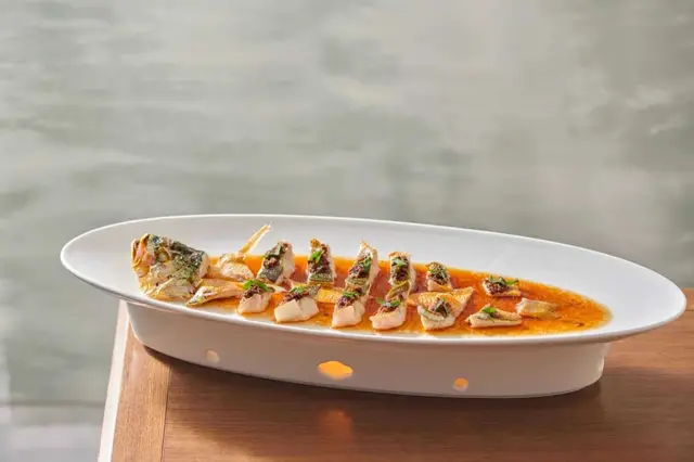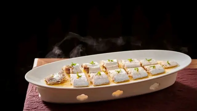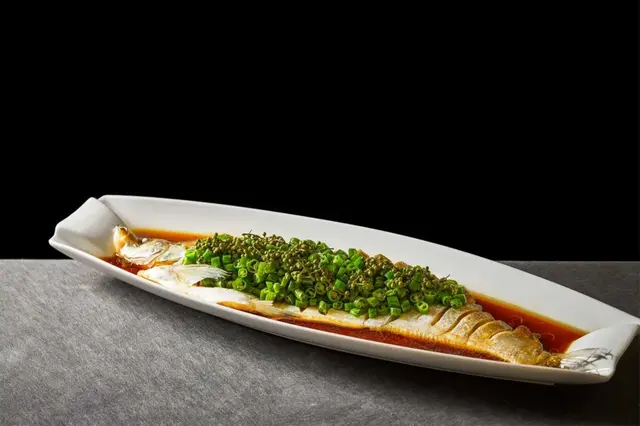 東海中鹿島大黃魚 / 二頭烏土豬肉配紅印饅頭 / 酥不膩果木烤鴨 / 清蒸帶魚 / 沸騰酸湯東星斑 / 老杭幫白制醬鴨