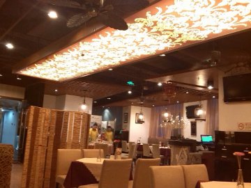 装修还算有小小的特色吧,对于我来说,头顶天花板上那一条长长的装饰灯带,图腾的图案,规模当然和世贸天阶的电子屏不能比。那天晚上七八点去的,里面客人相当少,就一两桌。这个饭里面是用椰汁煮的,甜甜的椰香味,旁边的小菜都是干干的,应该是没生意,用不出去,放了太久的原因。牛腩份量多了点,吃多了觉得有点腻。全部特色就是这个米饭。