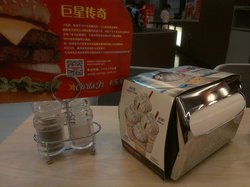 广发日活动,点了超级巨星芝士汉堡套餐,原价43元,打对折下来才21.5元,瞬间价格亲民了许多。因为是广发的活动,所以套餐内的薯条、饮料都不能换。买完单给了个纸杯自己去旁边自助式的倒饮料,能免费续。倒完饮料基本上汉堡也都做好了,会有服务员帮忙端上桌。超级巨星芝士汉堡就是2大块的牛肉+2块芝士,还有番茄、洋葱、酸黄瓜等,味道还不错,肉比较扎实。薯条很好吃,是粗薯条,番茄酱有原味和辣味可以选择。查看更多