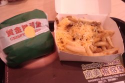 点了珍味皇菇堡、肉酱芝士薯条还有一个新产品的汉堡,叫不上名字,里面有猪肉牛肉洋葱圈的,挺厚实的一个汉堡,味道也还不错,珍味皇菇堡的料很多,香菇味很浓,里面还有一块鸡肉,肉酱芝士薯条还不错,薯条属于挺粗的,就是稍微咸了点。查看更多