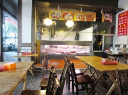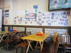 卢记华兴煎蛋面在玉林有两家店,一家在玉林北路,另一家在玉林南路.我去的是在玉林北路上的那一家,正好在玉林北路的路牌的后面,很容易就找到了.进了店才发现,这家除了招牌的蕃茄煎蛋面之外,还有其他的菜.像特色面系列:杂椒面,鱿鱼面,猪肝面.还有蒸菜系列:蒸牛肉,蒸排骨,蒸肥肠.特色干锅有:香辣基尾虾,干锅鸡,干锅兔.还有盖浇饭系列:回锅肉盖饭,鱼香肉丝盖饭等.炒饭系列有:芽菜肉沫炒饭,扬州炒饭,蛋炒饭等.我只选了蕃茄煎蛋面,它家用的不是荷包蛋,是先把蛋调散了以后,倒入油锅,煎到七八分时就起锅,然后加入蕃茄块,加入水,烩一会儿,再加入面,起锅入碗,最后再撒上葱段提味.咬一口蛋在嘴里,蛋煎得刚刚好,很香滑又有点儿焦香的味道,配上蕃茄,味道是相当的不错.…查看更多