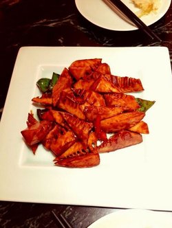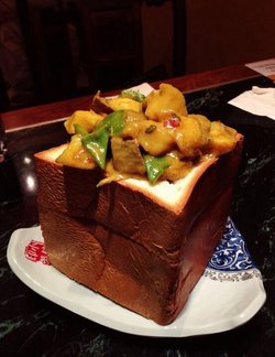 金包咖喱牛肉算挺有名的,实际上就是咖喱牛肉盛在面包里面,做法确实挺有创意,不过个人感觉用面包装对菜的味道没啥提升,虽然咖喱汁在面包里很入味但是本来两个就不太搭,不过咖喱牛肉味道还是可以的。 干烹土豆片感觉基本做成炸薯片炒出来的感觉了,脆脆的味道略重,不过吃起来感觉非常香,,还不错的一道菜。 我非常喜欢三少酥皮虾跟蒜泥贡菜这两道。贡菜的量相当够,吃起来口感味道都很好,咸淡也合适。三少酥皮虾做得很香脆,味道也特别棒。 除了主菜之外,这里的米饭感觉也很独特,米用得挺好,里面还有玉米一类的东西,感觉吃起来还挺香的。 查看更多