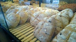 原麦山丘,真的是一个不错的面包房,为什么这么说,因为他家的面包特别的营养,都是用粗粮做的,可能味道上不如其他面包店的细腻,但是绝对的健康食品。他家的面包说实话造型都挺一般的,不那么精致,不那么漂亮,但是不好看的不一定不好吃。他家的很多面包味道也是挺好的。就像这个面包,个头很大,用粗粮做的,长三角的形状,中间还有葡萄干,吃起来口感不是很甜,淡淡的,面包里面的孔很大,口感不是很细腻,但是吃起来觉得挺粗犷的。边上的那种圆圆的面包,味道也是不错的,同样也是粗粮做的,里面的面包挺蓬松的。他家的面包,吃的就是健康,有机会还会过来买。查看更多