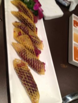品尊和美广场 话说听都没听过的一个地,因为微博中到的一个2-3人的免费试吃,2013-2-3中午带着妈妈出发鸟,家里过去还是非常方便的,虽然需要换乘但总共也就四站路,7号线岚皋路下来就是话说这个广场算是非常清静的 哈哈哈哈 没啥人的感觉 好吧 也许大家还不知道 因为时间估计的不够充分 所以先行逛了圈 其实好吃的东西还是蛮多的 加上一个超市~以后有机会可以来认真逛逛滴~~~入正题吧整个坏境布置非常素雅 一点点韩式风 大爱墙上的扇子 然后坐下后 扫了一眼菜单 当然只是想大概了解下人均价格啦 毕竟食物好吃很重要 性价比也很重要 嗯 基本都在承受范围内 现在吃满100元还有送菜 很实惠的再赞一下这一家的服务 基本上服务员都给人一种宾至如归的感觉 因为有烤肉 一会会就会来换烤盘 妈妈都不好意思 偷偷在说 其实可以不用换 嘿嘿既然是微博中奖的 据说品尝的都是新品 简单谈一下自己的意见吧芝士年糕火锅 汤汁陪有鱿鱼、淡菜、虾、培根等调制~所以很鲜美,年糕很入味,嚼劲Q弹 很好吃 我喜欢的味增五花肉 分量很足,很嫩 食肉主义的我不加生菜直接吃 配上孜然等调料 味道一级棒这个最后没吃完 打包带回家了~~辣味梅肉 这个比较疑惑的是 为什么能搞的如此鲜嫩~金衣紫薯 卖相很好 但个人感觉有点点太甜了 吃多了有点腻味~金桔柠檬露 搭配烤肉吃绝对赞的~~~查看更多