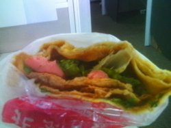 一般早餐才吃的煎饼的说,他们家的算是特例了,做的真心味道不错,薄脆不是传统的那种,不过很脆很好吃!每次都想让他多来点~很喜欢里面的生菜,味道也很好,关键的煎饼不粘,并且有可以选择的面,味道上属于改良的那种,很赞~查看更多