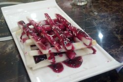 口福居位于延庆县城妫水北街29号(中心市场东门北侧)在延庆县算是比较有名的酒店了,很多人会选择在这里摆婚宴,里面地方很大,大厅能容纳不少人。而且这家店的价格比较公道,装修也算是可以的,比较上档次,很多人会选择来这里。一次和客户吃饭,来这里,晒晒菜品。【酥炸香椿卷】香酥可口,外脆里嫩,香椿味极浓,鲜嫩可口。这道菜的卖相也挺好的,切的形状和里面的夹菜配合,看上去很漂亮。【蓝莓山药】山药条配蓝莓汁,山药条比较鲜脆,蓝莓汁感觉一般,不如别家的好吃。而且这道菜分量不大,吃几口就没了。【板栗烧红烧肉】红烧肉炖的很烂,极其入味,而且肥而不腻,板栗挺新鲜的,味道佳,这道菜的分量很足,吃太多会感觉腻。【西芹木耳炒蛋】这道菜里的西芹和木耳有点儿少,鸡蛋放得太多,吃起来特别油腻,如果能多加点儿配菜,可能味道会更好些。【手撕饼】这家的手撕饼做得比较薄比较脆,并的味道很香,咸淡得当,极其推荐。查看更多