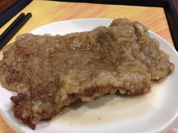 台北东一排骨这家店开在瑞欧百货内,这家店面不大,生意很不错。比较喜欢它家的特色炸猪排,猪排个头很大,炸的色泽金黄,入口外脆里嫩,沾上辣酱油后更美味好吃。每天中午吃饭的时候,这里人特别的多,去晚了还要排队等位。