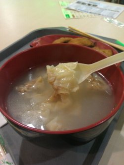 在日月光随便逛逛,一路走走吃吃。有一段时间没吃云吞面了,就来大食代的这家吃吃看。我点了19元一份的鲜虾云吞面,超喜欢吃虾云吞呀,M同学为了陪我吃面,于是点了炸猪排(据她称,不怎么好吃。那么喜欢吃炸猪排的人都说不好吃,那么,对吧,呵呵)。这家的云吞面蛮特别的,汤头不是白的,而是加了辣油这样。云吞里的虾非常的少,我几乎以为自己在吃鲜肉云吞了。总之是很一般的店。查看更多