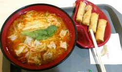 单位附近的日月光,吃的东西的确很多呢。基本每天都有特价的套餐,味道也是可以的。忘沙爹云吞面的汤还似乎不错的,云吞也不少。中午吃着配合着春卷,基本都是吃的很饱呢。价格也是很实惠的。。。。。中午吃吃好好的。速度来说不是很快。。中午忙的时候,里面有些乱。。查看更多