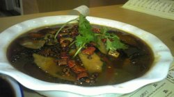 不错的素食 stellayxj等級42012-11-1217 瀏覽 關注 店面较小,才五张桌子。布置也简单,只墙上贴了些菜式的图片和介绍。说是采用葵瓜子油,在上海某地有专门的供货渠道。老板是台湾人,人称“七哥”,较为活络,很热情。因店员就一个,所以老板也要招呼客人和上菜。晚餐正好不想吃荤,所以就在这里用餐 。菜式分凉菜、热炒、汤、主食。一般都不到三十元。还有商务套餐,二十几种,二十多元。老板说菜名都不想带荤字,如蛋改为旦,鸡改为吉。豆浆新鲜出炉,有较为浓郁的香味。五香素牛肉:带着麻辣味。豆制品做的,较软,带点弹性。一般。糖醋素鱼:浓油赤酱。鱼皮是海苔做的,中间的口感很像鱼,也有鱼的鲜味。还不错。九层塔茄子:茄子的火候恰到好处,嫩嫩的,九层塔的香味并不重,去掉了茄子的怪味。味道带着酱香和甜味,好吃。荷包蛋:蛋黄是用南瓜和绿豆做的,粉粉的。蛋白相比而言软了一点,色泽上差了点。蘸上酱油吃倒还不错。荠菜山药汤:最后才上,还烫得要死。喝上去味道较为清爽,鲜鲜的。米饭:米饭还可以,撒了点黑芝麻。颗粒分明,软糯可口。感觉浓油赤酱的菜较多,油也多了点,有点腻。不过价格不贵,菜的味道也还错,就是菜量较少。…查看更多+ 4以上食評乃用戶個人意見 , 並不代表OpenRice之觀點。讚好分享不错的素食 台湾7哥美味素食 https://s.openrice.com/KtbT100J7u300檢舉 土屋安娜 煎蛋也是假的啊?2012-11-13 回覆 stellayxj 是啊,素的2012-11-13 回覆 張貼 評分4味道3環境4服務3衛生3抵食推介美食豆浆正正荷包蛋五香素牛肉九层塔茄子糖醋素鱼荠菜山药汤糖醋素鱼,九层塔茄子,豆浆,荷包蛋用餐時段晚餐