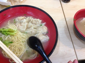 喜欢鲜虾云吞面和炸猪排
