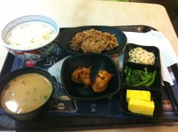 6点多左右去的,人不是很多,比较冷清~ 自己点了照烧鸡饭(标准碗)、朋友点了招牌肥牛饭(大碗),从点单到拿到饭速度很快很快,大约只要1分钟左右,仔细看真的没看出大碗和标准碗有什么多大的区别,朋友要吃辣的,就拿了点餐旁边的那个很小包装的粉,是辣的,其实也不知道他准要作用是什么,朋友说牛肉饭没什么味道,酱汁又少,配点这个粉还能下饭呢,我也觉得这次吃的酱汁好少,真的好看服务员帮你量菜能决定酱汁的多少,最近不会去吃吉野家了,越来越觉得不不如从前的好吃了查看更多