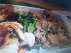 其实以前一直觉得这家店的东东很一般,但是自从这次吃了他们家的新品之后就改变了这样的想法。这次是肥牛和鸡肉的双拼饭,套餐里还包括酸豆角和饮料。双拼饭很好吃哦,鸡肉是那种烤过的,很香,肥牛里面还有洋葱,中间是西兰花、花菜和胡萝卜,味道还不错,关键是很营养。不过总是觉得他们家的饮料有点坑爹,要是可以换成果汁之类的就好了查看更多