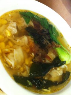 他们家的东西很适合吃中饭的时候去啊,因为东西都比较的简单,作为中饭不但可以节约时间,而且还可以品尝到美食啊,他们家的招牌鲜虾云吞面口感超级不错,云吞里面大大的整个的虾子入料,外面的皮很薄,而且整个贴和在肉上面,搭配上鲜美的汤底,超级不错啊查看更多
