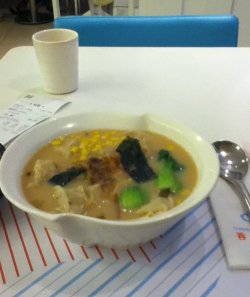 点了两个东西,一个是原味云吞,海鲜清汤的;还有一个是肉燥饭云吞个头挺大的,而且是鲜肉的。味道不错滴~~但是就是个头小了点啦。。有点吃不饱今天正好胃不舒服,点个汤汤水水的吃吃蛮好的肉燥饭,是妈妈点的。味道还不错滴肉燥就是肉末啦~~还配送一碗汤查看更多