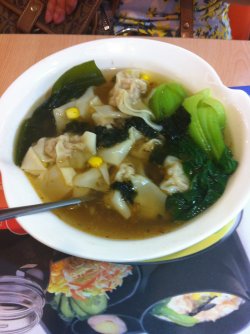 中了张20元的券就去吃了,因为上次吃的干拌云吞感觉不好吃,这次就点了他们招牌的猪肉云吞。汤底要的是浓骨头汤,意外了下,比干拌的好吃多了!汤很鲜很浓,猪肉味道也超好。不过大概煮太久了,有好几个云吞的皮跟肉都分离了,但是不影响味道~还点了份杏仁豆腐,第一次吃,感觉一般,没有想象中的好吃。不过他们送奶茶的活动结束了,好可惜,他们家奶茶很好喝的~服务态度也不错!这个月好像还有10元的抵用券,下次还要去吃~查看更多