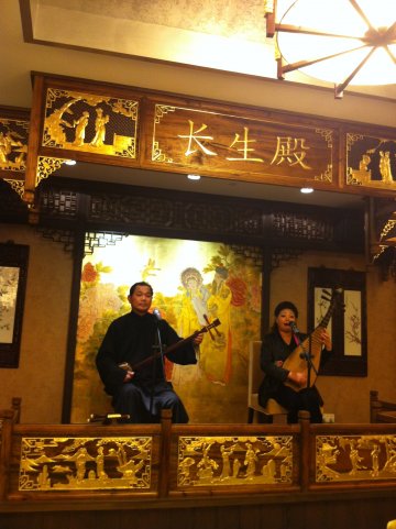 我们是晚上去那里吃饭的.晚上真的有昆曲的表演,吴侬软语很美妙的戏曲.他家里面的装修很优雅仿佛置身于江南的水乡.里面的菜也是那种江南的小菜.我们点了手剥河虾仁,松鼠鲑鱼,熏鱼,红烧肉和黄鱼汤.虾仁味美弹牙,鲑鱼酸甜爽口.红烧肉也很酥烂,这家店很符合我的胃口所以很喜欢吃.…查看更多