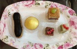 这家店面挺小的,店面装修的比较温馨,卖的基本上都是甜点吧,品种不算多,看了看觉得每份糕点都比较袖珍呢,价格实在也不便宜。。。本着没吃过的店子都尝尝的原则,选了份覆盆子拿破仑,吃起来感觉有些干,而且有点点硬,味道真心一般啊,太甜了些。。重点是确实是很小的一块,咬了几口就没了。。其他的我就没勇气试了,真心是一般的店子~~