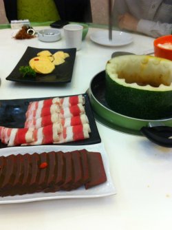 在冬瓜里涮肉,挺新颖的,所以约着朋友下班过来吃,人气还挺高的,我们不到7点来,就不到2桌了。点了冬瓜锅,在里面涮东西真好玩,边涮边用勺刮冬瓜瓤吃。涮肉还是觉得不如直接在锅内涮熟的快,毕竟隔了一层,还是多煮一会比较好。午餐肉很香,反正也是熟的,一涮就能吃。价格到是不贵,人均55元左右。查看更多