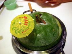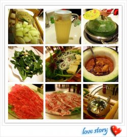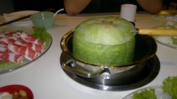 去了才知道为什么叫鲜瓜火锅~有两种锅可以选,冬瓜锅和南瓜锅,我们选的是冬瓜锅。电磁炉上先放了一个普通的锅,然后把一整个大冬瓜放在锅里,冬瓜中间掏空了,把汤倒进去,就在冬瓜里涮菜吃~连盖子也是从冬瓜上切下来的,看着真好玩啊~我们的锅底要的是烧汁的,还有香辣的。先放的鸡,煮到最后鸡肉还是很嫩,烧汁也很入味,锅底还有几片柠檬,时不时的能闻到柠檬的清香~蓝莓柚子比我想象中好吃很多啊!柚子肉很厚,很甜!肥牛和羊肉片也很嫩,肉质很好,涮完一点沫子都没有。涮完直接吃就很香,烧汁锅底本身就很有味道,不用蘸调料了。涮一会之后冬瓜味就出来了,烧汁也慢慢的渗入了厚厚的冬瓜壁,可以把冬瓜肉刮下来吃,别有一番味道哦!吃着冬瓜锅还要涮着冬瓜肉,吼吼吼~冬瓜涮久一点比较好吃,让烧汁渗进去,咬一口,绵软入味,好吃!马蹄红枣水也特别好喝!马蹄就是荸荠,我自己在家也经常煮荸荠水喝~蔬菜拼盘是超级一大盘!我们只吃了豆腐,粉丝和蘑菇,蔬菜全部打包回去了,实在太多了。。。而且烧汁锅底有点油,涮肉,豆腐,粉丝什么的特别好吃,涮菜就不行了,菜叶上都漂着油。。。手擀面涮完也超级好吃啊~吸收了整个锅的精华哈哈!可是最后实在吃不了了,剩了好多,罪过啊罪过。。查看更多