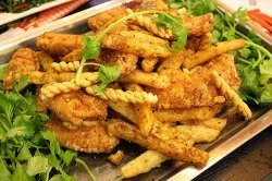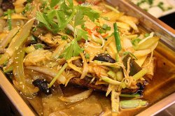 味妙烤鱼吧青塔店在丰台区岳各庄梅市口路西府颐园7号楼底商,交通方便,531路701路就在门口停车,门口还能免费停车,这点太难得了味妙烤鱼吧青塔店两层,一层散座,不太大但很明亮而显得不拥挤,二层是三个包间和一些散座,相对二层更安静服务员不多各个有眼力件,忙而不乱,井井有条照顾到所有客人他家的凉菜中规中矩,精致味道很好,厨师的用心之做作为烤鱼吧,当然烤鱼是重头戏,一条鱼分成两半,做成两种口味,很赞,鱼烤的外皮焦焦,肉又鲜嫩多汁,厨师的功力体现麻辣牛蛙:上来红彤彤的一大盘,大块的牛蛙在麻辣汁中,辣的满头大汗也听不下嘴味妙翅中:麻辣、蒜香两在种口味,大块的薯条,比那种牙签式的吃着痛快多了,当吃着稍许有麻辣感时,盘中的几只小麻花正好清口去辣,为后边的烤鱼做准备下边重头戏来了,烤鱼上场了鲶鱼:麻辣、豆豉口味,鲶鱼吃着最过瘾,就一根主刺,大一放心的大快朵颐清江鱼:泡椒、蒜香,清江鱼也是刺不多,泡椒的更好点,辣不不剧烈,是那种温和的辣,蒜香的味道有点淡草鱼:草鱼土腥味比较大做成葱香、香辣的,比较好的去除了土腥味,更喜欢葱香味的葱花酱油炒饭:摆盘很是花心思,摆成了一条鱼的形状,拿花生米镶上眼睛,立即活灵活现起来…查看更多