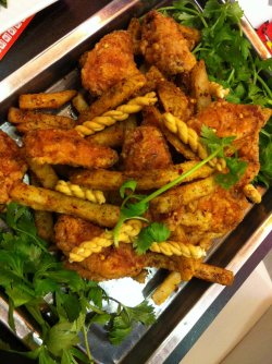 一直就非常钟爱烤鱼吧一是离家非常的近二是物美价廉啊就真跟我家的大食堂一样一样的每次都是去吃烤鱼这次吃的是鸡翅薯条餐非常的给力啊桌子上放的是烤鱼必备的神器——瓜子反正都得等,先嗑几颗吧要了一个凉菜——凉拌金针菇是类似于超市买的那种袋装的金针菇特别的麻辣入味老妈想喝疙瘩汤了也要了一份疙瘩不算是很大个儿但是味道很好,鸡蛋花也多给力的主角来啦~~鸡翅薯条满满的一大盘子呀很大个很大个的鸡翅炸的很酥脆很酥脆超级好吃呢大根的薯条薯条还送了好多的番茄酱不够的话,还可以管服务员要很新奇的搭配——小麻花第一次看到过这样的搭配挺奇特的一份里面有16个鸡翅如果是女生的话,肯定吃不了剩下的打包了又吃一顿太经济实惠了啊查看更多