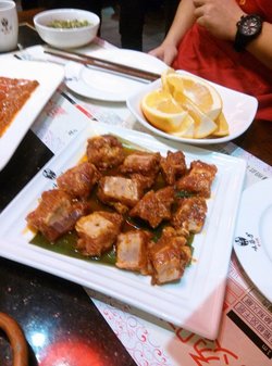 参加11月份的大V聚会,这个火锅店自从准备开业那天就一直留意来着,之前一次试吃没有被选中,自己也没想过要去,人少没意思哈~!地点很好找的,门脸嘛,相对于隔壁的蜀九香来说算是小的了,里面也不大,反正也没参观过,我们的窝点在一进门的地方,服务员美眉很热情,去的那天下雨来着,服务员美眉收了我的伞……然后我们落座,一台八张椅子,我们的窝点有点凉亭的感觉,坐在门口有点凉飕飕,后来吃着吃着就热了……店长说【味蜀吾】的意思就是【味道属我们最好】很好理解啊!其它的忘记了=_=|,大厨呢是个年轻的小伙子,说到店里的东西简直可以称得上是绘声绘色啊!给我们桌上的是九宫格火锅,据说是微辣的,还好,没有感到很辣,第一次吃九宫格,第一次见到传闻中的长筷子,一开始还真是不习惯,总是怕会戳到旁边的小伙伴呢!#天椒牛肉,这个忘记要煮多久了,反正是很嫩的说,被我们下锅之后有几个被遗忘的,煮的依旧很嫩,很好吃,有点筋,刚煮的第一个时间可能有点短吃的时候看到红血丝了呢,不过味道超好的!5星然后是肚,一个白的,一个灰的,有点哏哏的口感,没什么特别的味道,但是口感很好,而且看上去就很干净,摆盘神马的都很好#鸭肠,这个造型真的真不错啊!虽然每次上的时候那个架子都是差一点散掉,不过,丝毫不影响我们的心情,浅橘色的鸭肠(应该算是浅橘色吧……)有一根特别特别长,单位可以用米来计算了……味道也不错,很有韧性的感觉丸子,感觉很肉的说各种滑,后来上了各种滑,用勺子形状的器皿装的,然后勾在锅边,等到熟了之后有的已经脱落了,吃了两个,第一不知道什么,面面的,后来吃到一个虾滑,能够感觉到虾肉的那种丝滑紧实的感觉~~排骨,这个是第一次吃火锅的时候吃到的,很不错的,4星脑花,第一次吃哦,上来的时候真的是沟洄状的,看着有点瘆人……小伙伴说当它是豆腐,尝了一下,没感觉到味道酸梅汁,味道很淡其它的,印象不深了,反正就觉得吧,各种东西都很合口味,香油碗吃火锅感觉不错哦~!价位来说还是比较高的了,想去吃的,还是多点人去比较合适,一份东西都得4,5十那样子吧………查看更多