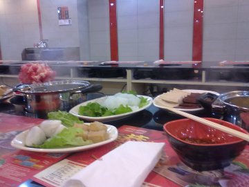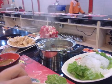 比较平民的一家火锅店,座位不是很大,是吧台款的围炉火锅,走进店面感觉店里面很热闹,热气腾腾的感觉很诱人,点了特色的牛肉平盘,还有双拼,要了金针菇和平菇的平盘、还有藕片和土豆片,这里的酱料是续的,点了麻酱,牛肉涮起来挺嫩的,沾上麻酱味道更鲜美,这里的性价比还是很高的,挺不错的。…查看更多