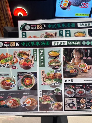 紅燒牛肉面 / 草本酸辣湯肥牛面 / 蟹黃面 / 草本番茄湯豚骨面 / 香辣湯豪橫肥腸面 / 鐵闆和牛肉串炒飯