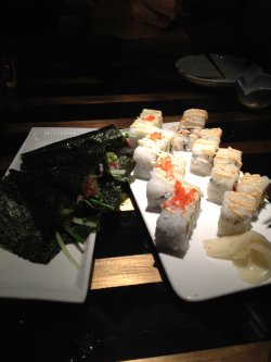 这家日料店开了很久了,开在上海公馆旁边,人均消费不便宜。由于去的时候已经过了饭点了,冷冷清清的,点了刺身拼盘和寿司。刺身拼盘里的toro刚从冷藏室里端上来,咬下去都是冰渣,感觉很差。三文鱼的肉也是软塌塌的,觉得不是很新鲜。而且芥末的味道好淡,放了很多还是没感觉。鳗鱼寿司还不错,其他的寿司很一般。火锅里面的鱼丸就两个,豆腐也很少,最多的就是白菜了,但是汤的整体味道还是不错的,寿司拼盘很能吃饱,要表扬一下他们的炒牛肉饭,荷叶包着的那个,很入味,整体不错。查看更多