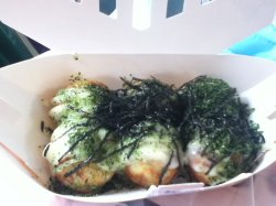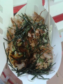 最喜欢买这些小食吃了,可以尝很多种味道嘛,呵呵! 买了他们家原味的章鱼小丸子,10块钱,6个,两个人分着吃吃蛮赞的。 上面放了不少木鱼花、海苔和色拉酱,叉起一个,一口塞进去,个头不小的说,里头好烫哦,嘻嘻!蛮大一块章鱼肉,灵的,味道很好哦!他们家的1000cc饮料,喝起来很过瘾,我们两个点的都是酸梅汁,后来没喝完。查看更多