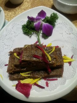 这是一家坐落在航天桥附近的小馆,西城的一个独门独院,车可以直接停在院内,很方便,有三十个左右停车位,因为生意红火的原因,要来的话可要早点哦!走进大门,门厅是特色的中国古典设计,古色古香,很有韵味!顺着小道再往里走,映入眼帘的便真是一座“小镇”了。一派云南水乡的景色,芭蕉树环抱着大理石桌面,客人坐在两侧的藤椅上,点上几道云南小菜,惬意的很啊!如果人多谈事情的话,还有单间预备。不过如果能在大厅内呼吸着绿植的香气,再享受着美食,那才真是再好不过了!和顺古镇是云南省腾冲县的明朝汉族古镇,很多电视节目和网站都推荐过,我一直向往能去吃喝玩乐下。所以我也一直把和顺小镇作为一个微缩,服务员很多都是云南人,穿着民族服装很漂亮,服务也带着他们民族的热情,这里也主打的是腾冲特色菜。我们今天点了一些,我推荐几个我喜欢的。1 首先我推荐个最最最喜欢的普洱玫瑰酥,这是我吃过最好吃的,也是我认为非常物超所值的。29元14块。在云南和很多地方吃过很多种玫瑰酥,要不就是馅形的,要不就是很油的,惟有这里的是真正酥脆的,蜂蜜甜,不油腻,反而带着花香和普洱茶味,呈小饼干状。上边还撒了一些菊花和玫瑰花瓣,真是色香味俱全啊!2 这里的山珍汽锅鸡也很值得推荐,各种野山菌都是云南坐飞机过来的,大概我尝出有5-6种野山菌吧,原生态纯天然,营养价值极高,用鸡汤在汽锅中吊出野山菌的鲜美和营养,真可谓是鸡块香嫩,汤汁鲜美!我们要的大锅152元,我居然喝了好几碗!3 很有腾冲当地特色的腾冲大耳片,服务员强烈推荐我的,说一只猪耳朵要片上20多刀,切的薄厚适中,很考验刀工哦,每一片都很晶莹剔透,很像大花瓣,非常香脆可口,很有嚼头!32元一盘。4 黑三剁是很具有浓郁云南地方风味的家常菜肴,几乎所有的云南菜馆都有,都是用云南的云椒和云南大头菜和剁肉炒的,加红绿相间,咸香微辣,我通常都会点来下饭吃。5 私家小黄牛说是他家的私房菜,不知道底料都有什么,估计秘制了一些药材吧,感觉有点药材味,味稍微有点咸辣,但是很好吃,牛肉也很嫩并不塞牙。最后建议点个百蓝根吃,防止感冒哈。要了云南最有名的过桥米线,但是这里做的没什么味道,所以不推荐。总体来说,这里的环境、菜品和价位还算性价比很高,可以来享受下世外桃源的感觉,晚上一出饭馆门抬头就见中央电视塔,感觉真好啊!有点建议就是作为这么小资的地方如果能有个WI-FI就好了!查看更多