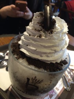 最大的感觉就是,好多人啊,等座就等了1个小时,去的时候是周末,店面很大,上下2层,环境很好,有wifi,适合闺蜜约会,点的是人气产品,奥趣黑白刨冰,味道很好,比脸还大的玻璃碗,吃的很满足。上面是奶油,好大一块,好好吃,然后是一层奥利奥饼干,味道不错。焦糖香蕉华夫,好便宜哦,才20多,蛮大一块,2个人吃就够了,味道很好,不甜腻!查看更多