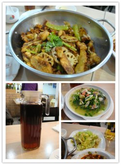 环境不是太好,就是冲着合算去的,而且量也是比较多的,招牌牛蛙是必点的,里面很多料,有藕片,有芹菜,还有土豆片,当然罗,最实在就是牛蛙,好大好大的一个呢,肉质很紧致,非常的好吃,藕片和土豆片也好吃,酸辣味,很脆的,这样一份很大的,口水鸡有点辣,没有牛蛙那么入味,那么好吃查看更多