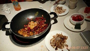 这家店就在东直门外大街,人要比簋街那家少多了,所以环境也不那么的嘈杂。爱吃牛蛙,点了特辣的,吃着很过瘾,他家的牛蛙很肥嫩,特别香,2人吃一锅基本就半饱了,而且辣的挺过瘾的,别看辣椒不多,但是里面的红油挺多的,也是起到麻辣的主要成分。凉菜推荐川北凉粉和大拌菜,就是图个爽口。主食推荐酸菜炒饭,单吃估计会觉得酸一些,但是吃完麻辣的,再吃它,觉得挺开胃的。价格不算很便宜,人均消费85元。