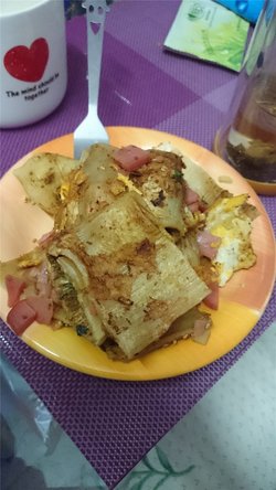 哈尔滨烤冷面一般都是5块钱一份,这个的味道确实不错,起码五块钱就能吃个半饱了吧,那层韧皮是特别的有特点的,很有弹性,上面还是抹了一层鸡蛋液的了,味道够浓重的,葱粒和火腿肠的香味都汇聚在这里了。不过辣椒粉太辣了,加了一点以后就全部都是辣椒的味道了。查看更多