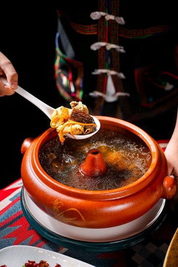 野生菌汽鍋雞 / 熱帶百香果煮魚 / 緬甸泡魯達 / 薄荷黃牛干巴 / 普洱小炒烏雞 / 哈尼當家燜豆腐