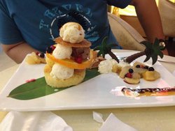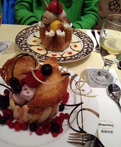 周末跟同学聚会,都带了孩子,我们大人聊天,孩子也玩的开心。点了一份白色恋人,248元,是当季的新款,样子做的挺漂亮的。中间是2个小雪人,挺可爱的。边上有水果和冰淇淋。四周还有马卡龙和蛋糕那些,冰淇淋我还是觉得单吃比较好,蘸着中间的巧克力,还是太腻了。查看更多