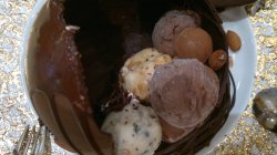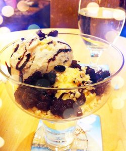 前几天好朋友约我去星天地泡酒吧,到的太早了,酒吧晚上还没营业,所以就逛伐逛伐到这家哈根达斯来坐坐了。和好朋友由于人数比较多,所以点了份大的冰激凌火锅。上菜速度不是很快哦,可能冰激凌火锅要准备的东西多吧。不过等也是值得的,端上来一看好漂亮。火锅的汤底原来是巧克力酱哦,巧克力酱搭配着冰激凌球,味道真是好极了。以后若来吃哈根达斯,还要点冰激凌火锅!查看更多