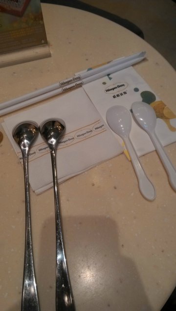 哈根达斯 Haagen Dazs,来福士店,就在地铁2号线东直门站D出口处的来福士购物中心的1层。正好逛街逛类了就过来坐坐,店内环境还不错,干净整洁。服务还不错,还给送了水。点了两个单球,虽说不大,但是口感很是爽滑。