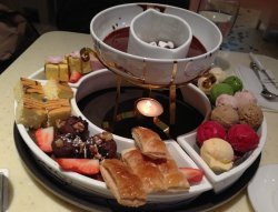 那个时候电视里广告放的太诱惑了。终究还是忍不住了。下班后直接跑到虹口龙之梦的哈根达斯点了个冰激淋火锅。结果很嘲的发觉。几乎所有进哈根达斯的都是冲着冰激淋火锅来的。火锅上来。色面真心的赞。味道刚开始吃也不错。但是吃到后面还是腻了。它的唯一缺憾是。冰激淋融化的快。。。
