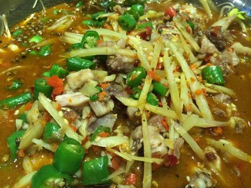 本来想去吃念念不忘的鱼蛙馆 结果那里今天兔子卖完了 于是三个人决定去香香巷看看 接连三家都是自贡菜,简直不知道选哪个 朋友就定了这个 进去发现墙上贴满了报纸 细看全是各类外文报纸,满满的外文看到总有一种特别的感觉 自贡菜好像鱼、蛙、兔是永远的主打 【鲜锅兔】小份78元,小锅装的,依旧是超多的仔姜丝、二荆条,兔肉新鲜嫩气,不过切的大小不一 【小煎花鲢】68元,端上来大家都赞看起来不还错,很难得吃到这种做法。长盘里鱼肉切成块状却丝毫不影响花鲢的整个形状,因为小煎制过的,外酥内嫩,鱼肉融合了仔姜和二荆条的辣味,够味又滑爽,不过刺还是小多的 【青菜钵】16元,可以算到素菜也可以算汤,满满的青菜粒和少许玉米粒,很清爽又营养 吃饭的时候看到桌上有大众点评的标志,就上APP看了看 有代金券的团购,68元的价值100元的,不过不能抵扣酒水 一次性餐具1元一人,米饭也是一人1元 团了两张,还是将就…查看更多