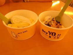 Hey YO!! 喜·乳酪 小木头等級42013-11-08 關注 这家店在万象城负一楼,地方不大,但是装修的很显眼,涂鸦的红色砖头墙,暖色的灯光,小桌子,酷毕了。店的左边柜台是各式点心,面包,泡芙还有冰激凌蛋糕,做的都很好看。店的右边是酸奶冰激凌DIY专区,有自助的冰激凌机,分原味,芒果,朗姆酒,番石榴,香草等多种口味可以选择,还有干果,饼干碎,各种水果等随意搭配,但是小伙伴们啊,人家这个可是要上秤按照重量算钱的啊,所以还是下手轻点为好。我选啦原味和番石榴的,加了些花生碎和奥利奥,由于没有位置,我只能辛苦的把冰激凌拿到楼上美食广场吃,(吃货太不容易啦)。不知道是不是我选的问题,感觉冰激凌有点酸,不是甜甜腻腻那种,但是我相信这个应该是优格乳的,由于是低脂雪糕,所以MM们可以放心的吃啊。据说他家的招牌拿破仑蛋糕味道很不错,下次要尝尝。…查看更多以上食評乃用戶個人意見 , 並不代表OpenRice之觀點。讚好分享Hey YO!! 喜·乳酪 喜乳酪(万象城店) https://s.openrice.com/KtbT3m0paC800檢舉 張貼 評分5味道5環境4服務4衛生3抵食推介美食正