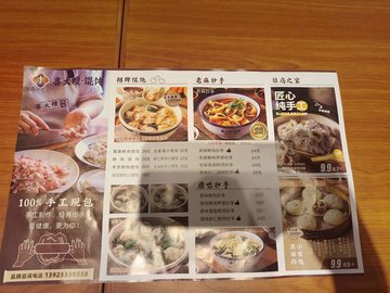 薺菜鮮肉小餛飩 / 黑豬肉小籠包 / 蟹黃鮮肉小餛飩 / 全家福小餛飩 / 原味鮮肉抄手 / 三丁燒賣