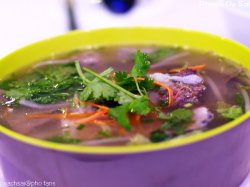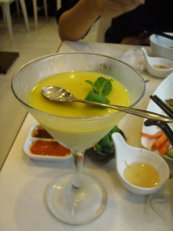 到大世界去白相,就去了她家吃饭,是一家越南菜的餐馆,人气很不错。一个点心很不错,叫肉松清凉米纸卷,1盘6个,各种形状大小很有趣。是用越南的那种很薄的春卷皮子做的,里面是生菜、肉松、超细米粉、虾仁、黄瓜和胡萝卜丝。配了2种酱,泰式甜辣酱(这个里面有蒜蓉的)和甜面酱。我觉得不沾酱更好吃,更能吃出食材和纸卷的鲜味。主食叫了火车头特别牛肉粉,酸酸辣辣的汤粉,也是越南特色的主食,里面的料也很足,有很多牛百叶,牛肉,贡丸,虾丸和绿豆芽。牛肉被切得很薄很嫩,丸子都很Q,绿豆芽也完全浸透了汤酸酸辣辣的汁水,很爽口。火山石香茅炙烤猪颈肉也推荐,肥瘦适中,肉切得非常薄,味道偏甜,烤得也非常嫩,但是量太少了。一大盘看上去很多,实际上没几片,下面全部都是大白菜、生菜,不给力啊。总的来说还可以,越南菜都挺好吃的,她家也是这样,但没有特别出彩的菜。…查看更多