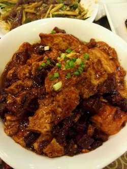 就在乐宾7楼,挺醒目的位置,因为门口还挂着上了电视节目的横幅呢,就进来试试看,因为是带着姥姥来吃饭,为了照顾老人家特意点了些软软的菜清淡的菜,我个人还是喜欢口重点的菜,本以为这顿没意思,吃不饱呢,没想到出奇的好吃呢,首先值得一提的是那个土豆茄子泥,非常软懦,里面配上香菜很有味呢,很喜欢,还点了一个三鲜豆腐,很鲜,没什么味道我都吃很好多块,而且他们家每天有一款特价菜呢,特色黑椒大排是重口的,我很喜欢