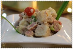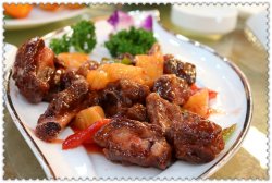 被相关联单位邀请去参加他们的年会,是在四季御园国际大酒店举办的~ 地点比较偏僻,在海淀区旱河路那里,空旷的一片土地,只有御苑四季酒店,很奢华的矗立在那里,别说,显得很气派的~年会是选在三楼的一个大厅,带个舞台的,先是领导发言,然后节目演出什么的,宽敞的环境,是很适合举办公司活动的场所呢~不过,菜品味道就很一般了~土豆沙拉,有绵软的土豆,还有火腿丁和豌豆粒,用浓稠的沙拉酱拌制,味道还可以吧~小吃拼盘,包括炸鸡块,味道类似肯德基德上校鸡块,沾上番茄酱,还不错~ 还有炸虾片呦,记得小时候就喜欢吃这个彩色炸虾片呢,很有怀旧味道,哈哈~水果鱼,白色的鱼身,配着缤纷鲜艳的水果粒,看着蛮漂亮的,但是味道实在差强人意,用粗制的淀粉做的鱼身,本身口感和味道不好,又掩盖了里面水果的清香~炸丸子,毫无卖相的一道菜,口感也很疲沓~奶油蛋糕,整体的白色,上面是“马年大吉”四个红色的大字,蛋糕的一圈裱着白色的奶油花朵,花朵上点缀着黑樱桃,看着还不错哦~ 别吃,哈哈,蛋糕底粗制,奶油很腻,黑樱桃是罐头装的那种~糖醋小排,酸甜口的,还配了菠萝,是我喜欢的口味,只是小排的口感有一点点偏硬~牛肉粒炒杏鲍菇,腌制过的牛肉粒很嫩,也很入味,搭配软嫩的杏鲍菇,非常好吃~避风塘虾,虾的个头还挺大的,新鲜,表皮酥脆,不错~炖肘子,肘子肉炖制的很软烂,不过味道偏淡,吃起来觉得有些腻~清蒸多宝鱼,白嫩鲜美的鱼肉,完全没有辜负清蒸的做法,味道很赞~清炖鸡,一整只鸡放在沙锅里熬制,没吃鸡肉,只喝了汤,非常鲜美好喝哦~炒年糕,切成小块的年糕很软糯,口感又是韧韧的,很有嚼劲,关键是那酱料的味道,甜中带辣,非常美味~…查看更多
